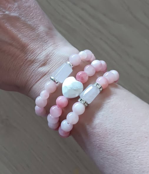 Rosa Jade finns i olika varianter! Ljungrosa, rosamelerad Jade, med mellandelar som Rosenkvarts och Howlite. Kan fås utan mellandelar.