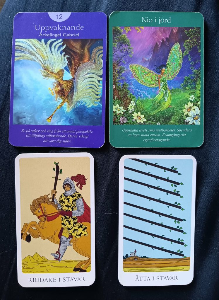 Framgång i något område bekräftas med 8 i Stavar. Något spännande sker och kanske i hög hastighet. En spännande period är här. Var dig själv och du kan komma hur långt som helst! Som sagt så är DU unik på ditt eget sätt! Använd din kraft för att genomföra projekt som du åtagit dig. Det du ger fokus och kraft på ger utdelning. Känner du rädsla inför något? Fråga dig själv varför och hur du kan bemöta det. När vi vågar göra sådant som är skrämmande och märker att det faktiskt inte var så farligt så finner vi ny styrka att fortsätta. Ett steg i taget och du kommer att märka med tiden att det var helt onödigt att oroa sig och inbilla det värsta. Kan du inbilla det värsta så kan du inbilla dig det bästa också! Träna och du får tillbaka din kraft att manifestera ditt bästa liv!