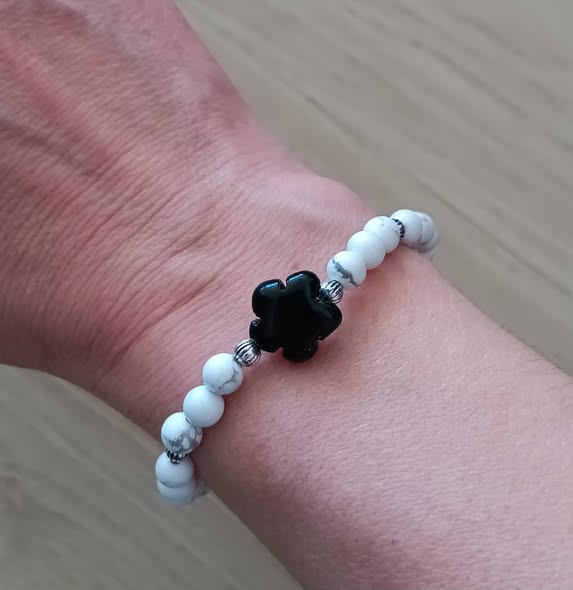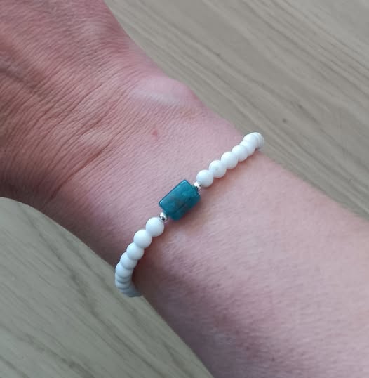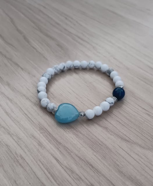 Howlite med Amazonit hjärta och en blå Agat pärla.
